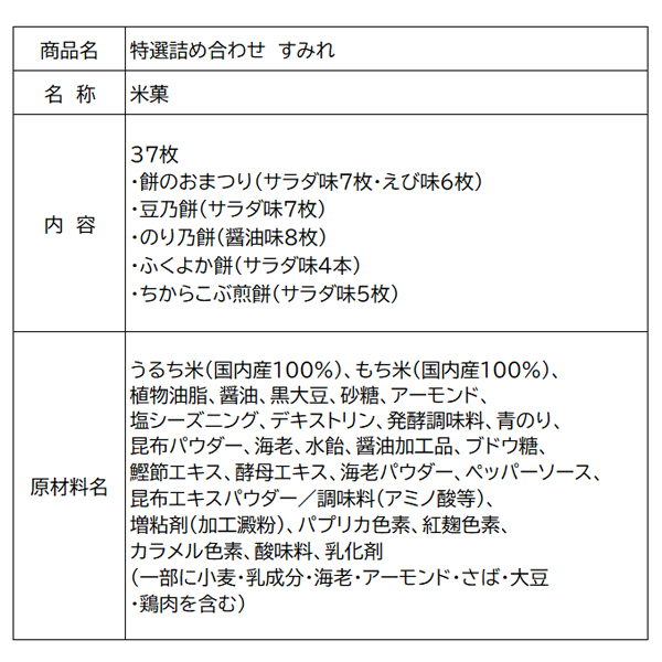 内容:37枚入(サラダ味/えび味/のり乃餅、他)